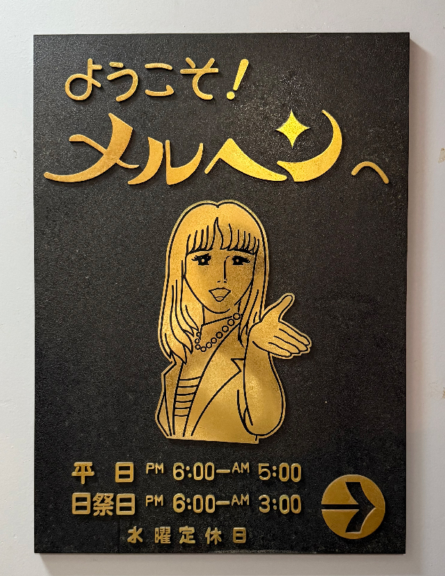 「元気なうちはお店を続けたい」と笑顔で語るママ。その温和な人柄が、お店全体の雰囲気を包み込んでいます。キャストとお客様の世代間ギャップから生まれる“いい意味でのカオス感”は、メルヘンならではの魅力。安心感と刺激が同居する空間は、おひとり様でも気軽に楽しめると評判です。